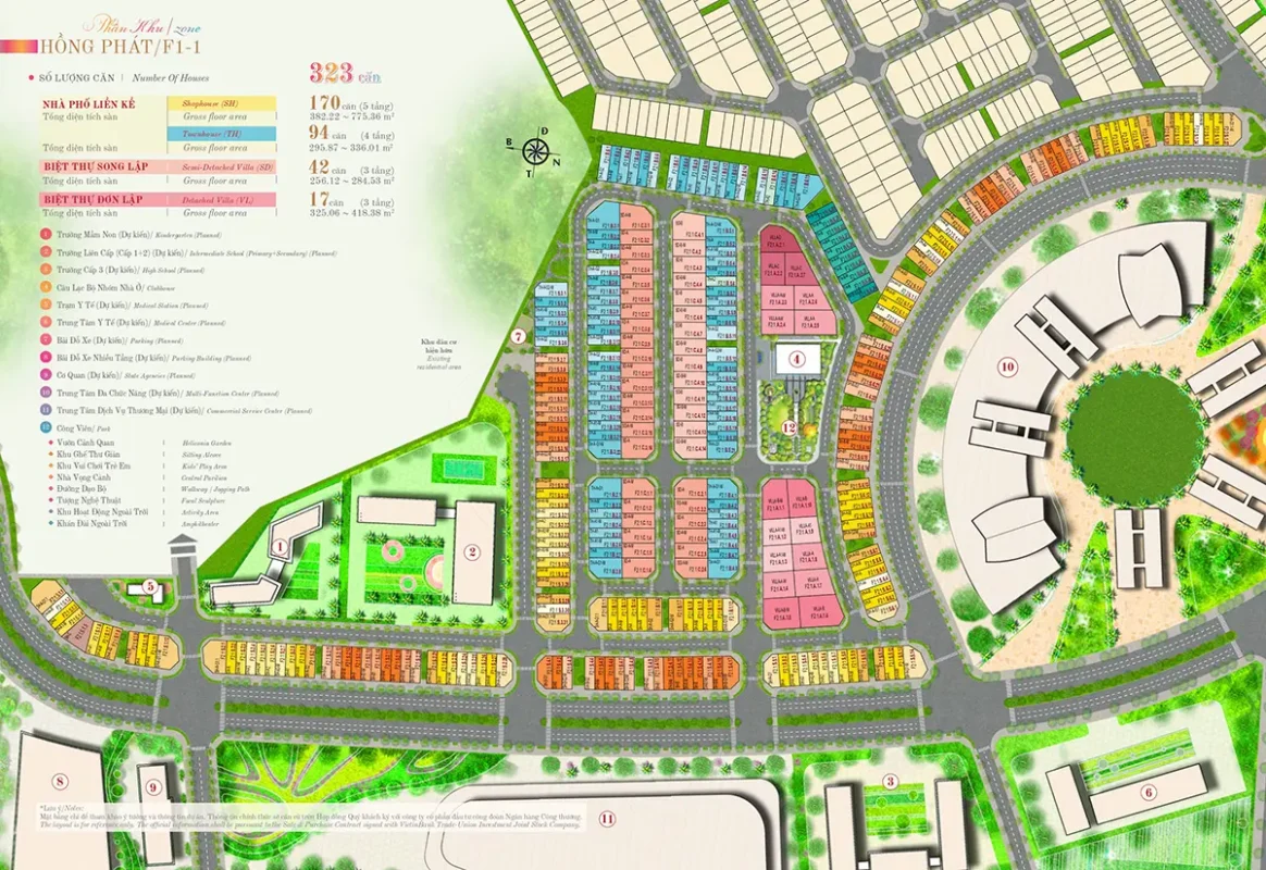 323 Sản Phẩm Bao Gồm BIỆT THỰ ĐƠN LẬP (17 căn): diện tích 300-470m, xây sẵn 3 tầng BIỆT THỰ SONG LẬP (42 căn): diện tích 180 – 290m, xây sẵn 3 tầng SHOPHOUSE (94 căn): diện tích 100 – 120m, xây sẵn 5 tầng NHÀ PHỐ LIÊN KẾ VƯỜN (170 căn): 100-120m xây sẵn 4 tầng |