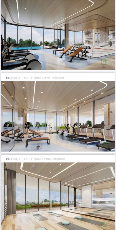 Phòng gym & yoga: Trang bị đầy đủ máy móc hiện đại, không gian thoáng rộng cho lối sống năng động.